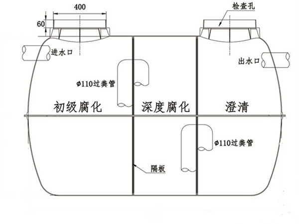 池體采用玻璃鋼材料模壓工藝制成,強(qiáng)度高,密封性好,絕不會(huì)發(fā)生因地基沉降而引起的斷裂破損和池內(nèi)板結(jié)浮渣層現(xiàn)象,徹底解決了磚砌化糞池污染地下水的問題。保證了化糞池可靠性運(yùn)行和厭氧化糞的功能厭氧菌的繁殖、生長(zhǎng)。無臭味,無病菌外溢,不滋生蚊蠅,不污染環(huán)境;做工精細(xì),內(nèi)壁光滑,科學(xué)導(dǎo)流,不堵塞。