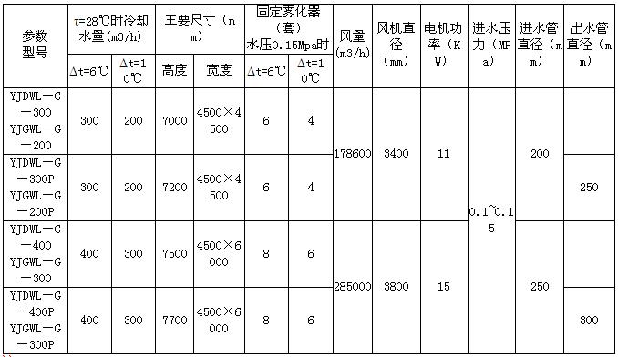 鼓風(fēng)無(wú)填料噴霧式冷卻塔主要參數(shù)表